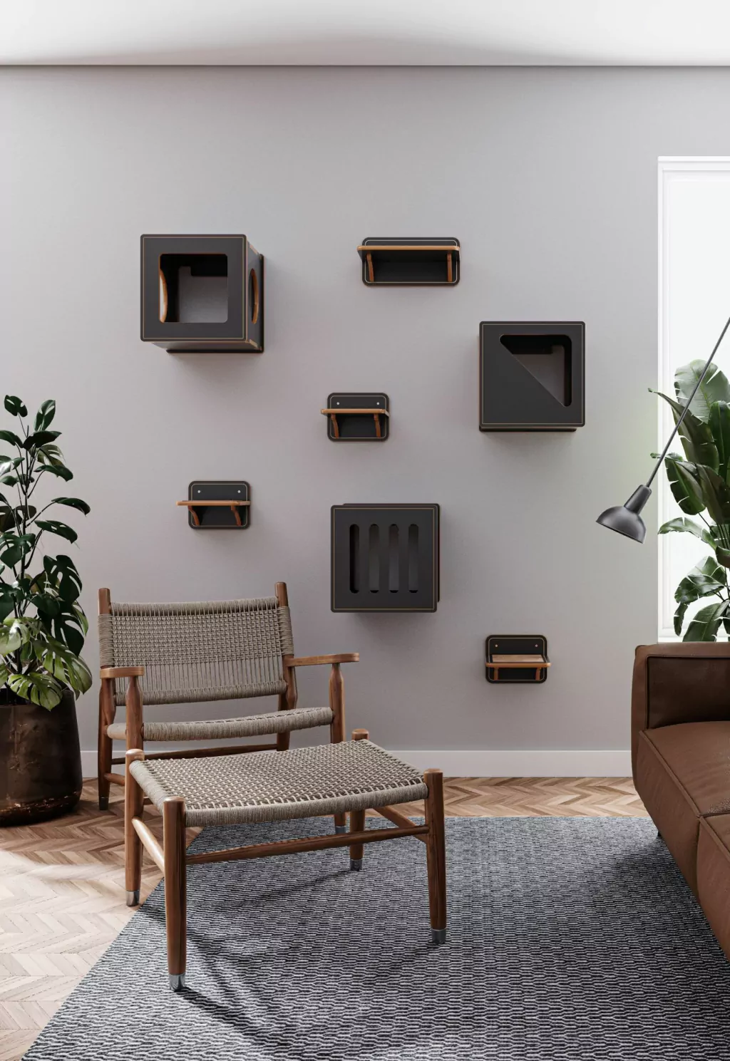 O Playground Frajola é composto por 3 Nichos Sagu, 3 Prateleiras Lion M e 1 Prateleira Lion G.
