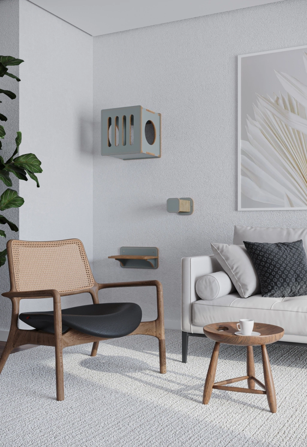 O Playground Sarabi é composto por 1 Arranhador Scar, 1 Nicho Sagu e 1 Prateleira Lion Grande.